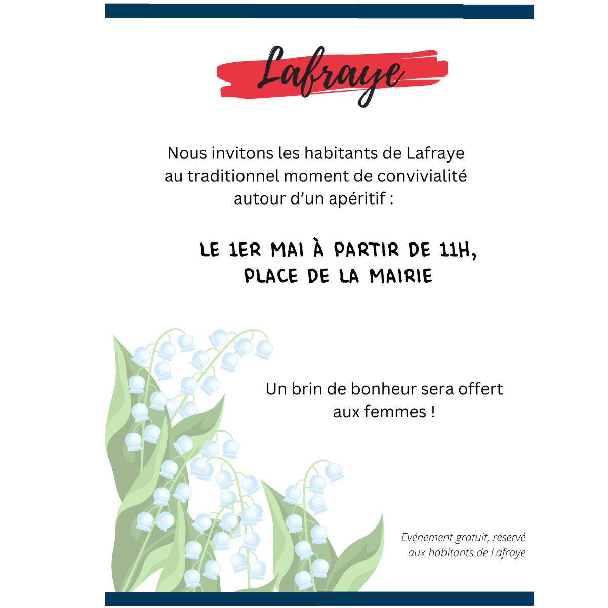 Le conseil municipal vous invite le 1er mai à 11h devant la mairie pour partager un moment de convivialité !